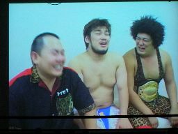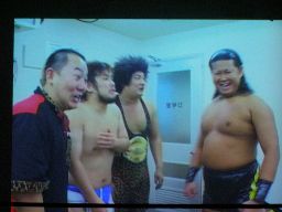控室映像。とっくに負けて試合を終えたD-BOXの3人。「大鷲親方は相手がどインディーレスラーでいいなあ。」などと言いたい放題。