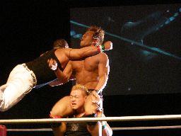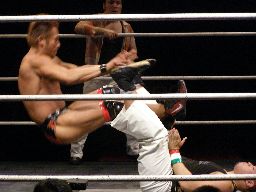 トーゴーが急所蹴り(右写真)、ベルナルドがマンハッタンドロップ、