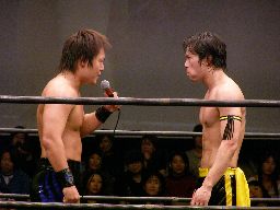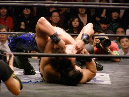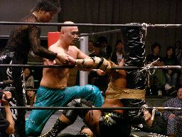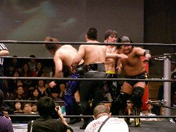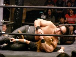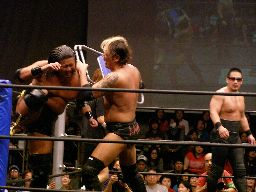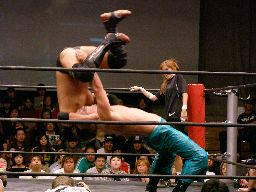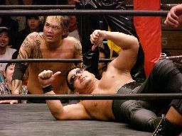 HARASHIMAが蒼魔刀(右写真)、高木から3カウント。