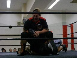 猪熊にチョークスラム(右写真)、カウント2。