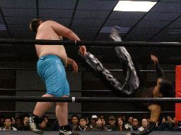 そしてセカンドコーナーからバルーンサルトプレス(右写真)、カウント2。