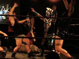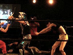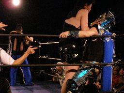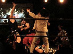 虎龍鬼をコーナーに振ってDJタイム(右写真)から串刺し攻撃連発。