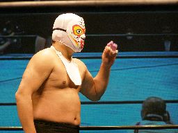 6人目は726。エプロンで踊る(右写真)。踊っている間に時間切れか?と思ったら踊り終わってリングインしてからゴングだった。
