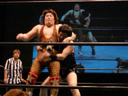 趙雲ロープに振る、アントンはテーズプレス(左写真)。アントン「お前に食わせるタンメンはねえっ!」と叫んでのエルボードロップ。両軍タッチ。
