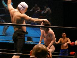 ジャイアントキッド馬謖とペドロがリングイン。キッドが唐竹割りで攻める。