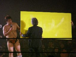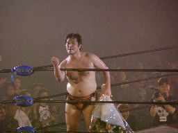 10番目、注目のダンプ松本が入場。みな逃げる。
