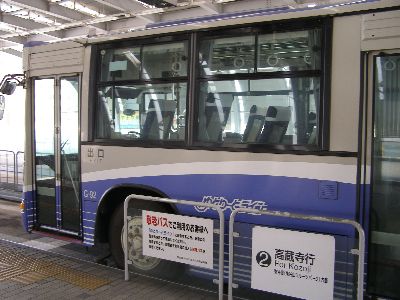 向こうに止まっているのはどう見てもバス。あ、これ、ガイドウェーバスだ!よくよく見るとあちこちに書いてあるのだが。そして竜泉寺のすぐ近くに停留所もある。なんで「駅」として表示してなかったのだろうか?
