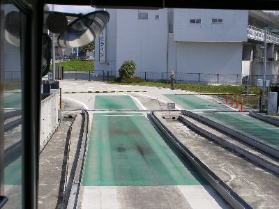 信号は全くなく、電車の駅のような停留所でのみ停まる。あんまり見てると気持ち悪くなった。