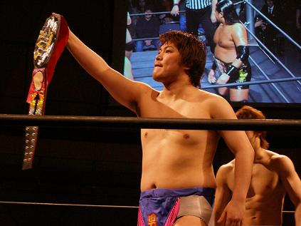 地下鉄谷町線と長堀鶴見緑地線で20分、そこからバスで10分。バス停の位置が変わっていたが、親切な地元の人に教えられてなんとかなる。地方大会3連戦の緒戦という扱いではあるがさすが大阪、ちょっとだけストーリーも展開あり。なにしろ5月の後楽園までNON-FIXは1回しかないし、軸になるはずのKUDOが骨折で欠場ということで早めに軌道修正の必要あったのでそうなったのかも。観戦記はこちら。