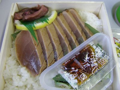 2ヶ月に一度の定期検査を終え、中野を11時に出発。このDDT西日本遠征3連戦(大阪、博多、倉敷)のため今日金曜から休み。昨日まで11日連続で働いてるんだから文句はあるまい。まずはのぞみで大阪へ。昼食は東京駅で買った「大間のマグロづけ炙り丼」。八戸駅の駅弁らしい。1680円。