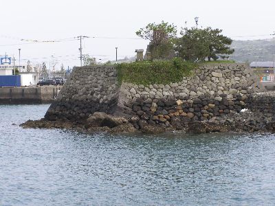 残り1時間、まずは石田城の前の福江藩の居城であった江川城跡を探すが見つからず。港に戻る間際、石田城に先立って作られた「常灯鼻」があったので近くまで行く。城の一部ではないが石垣の組み方はまるで城。