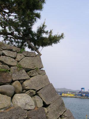 13時、ちょっと遅れて福江港入港。初の五島上陸だ。福江での目的はただひとつ、石田城。文久3年(1863)にできた、五稜郭を除けば日本で最も歴史のない城。しかしJTBの100名城に上がってたりするから前から行きたかった城ではあった。港からほんの5、6分で城に到着。なかなかの規模で石垣が残っている。