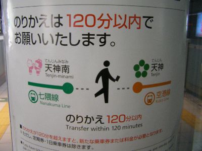 天神南−天神駅の乗り換えは多少の買い物も考慮したのか「120分以内」(歩いて10分程度)