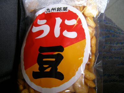 旅のお供はうに豆。
