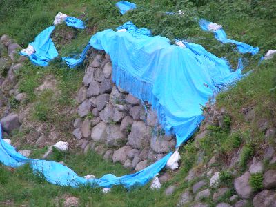おそらくこのブルーシートのあたりが破壊された現場。
