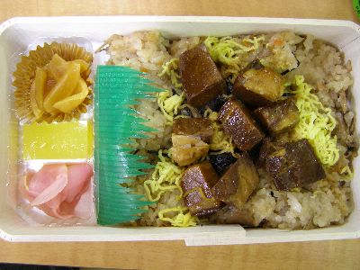 実家の親の夕食時間には到底間に合わないので駅で角煮めし買って食べる。角煮が固い。