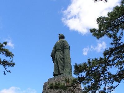 バースデー割引で高知へ。空港からバスではりまや橋に、はりまや橋から南はりまや橋まで歩き、桂浜行きのバスで一路桂浜に。桂浜と言えばもちろん坂本先生の銅像。逆光なので背中からの写真のみ。