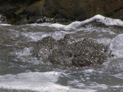 岩陰に何やら水が噴き出ているような泡が。何なのだろう?近づけなかったのが残念。
