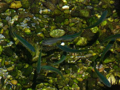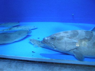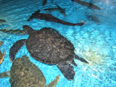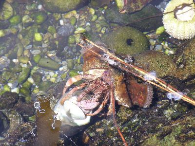 桂浜水族館に。入口に自然のままを演出したのか潮だまり風の水槽が。ヤドカリが貝を食べていた。