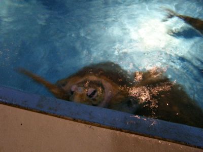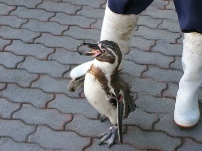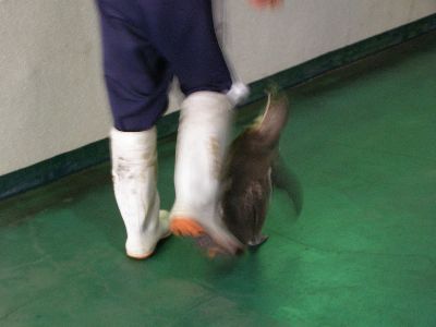 コースをそれると飼育係のおじさんの蹴りが入ります。