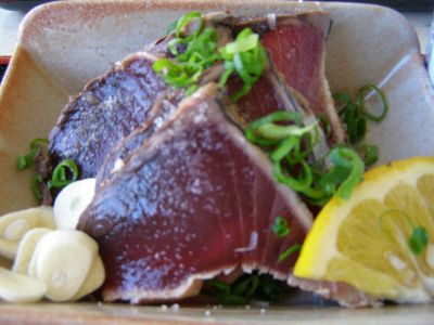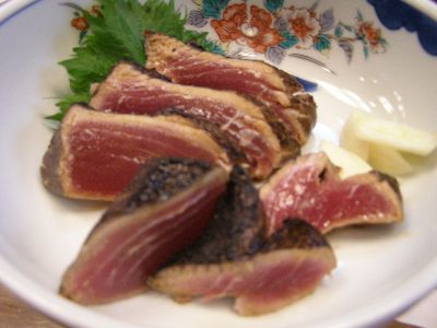 夕食はこの旅の第一目的「たたき亭」。これは塩たたき。
