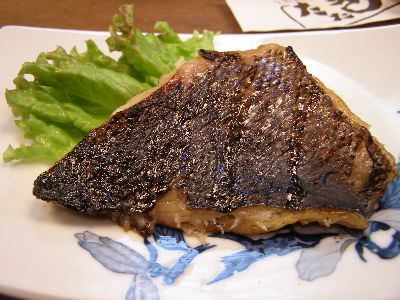 グレの味噌漬け焼き。たたき亭のおばちゃんいわく「魚がうまいんじゃなく味噌がうまい」。グレの立場がない。