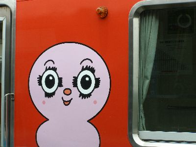 窪川からは土佐くろしお鉄道に。「だるま太陽」をモチーフにしたキャラクター「サニーくん」と「サンコちゃん」が車体に。当然やなせたかしデザイン。