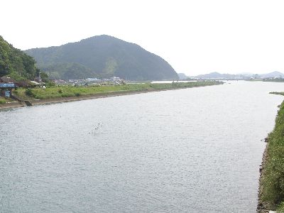 南風車中からの風景。窪川駅近くの四万十川の風景。