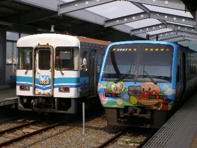 アンパンマン列車(右側)で高知に戻る。16時5分のバスで空港に行き、18時40分の飛行機で帰京。