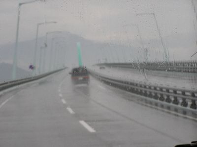 北九州空港に着くと大雨。この3連休、ちょうど九州には台風13号が接近中。どうも大分に行く時はいつも天気が悪い。