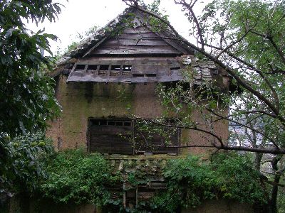 今日は豊中でDDTの試合。大分地方の天気がさらに悪くなっていたのでどうしようかとも思ったが一応予定したとおりに行動することにした。最初の目的地は日出城の鬼門櫓。日出城は2年前に行ったが、鬼門櫓は全然遠い民家に移築されているのだ。7時半にチェックアウトして駅に行くと西村、ヒロ斉藤、マイク・バートン、バック・クォーターメインの4人が切符買って特急に駆け込むところ。自分は8時発の普通列車で暘谷駅へ。雨は降ったりやんだりだったが暘谷駅で降りた時点ではやんでいた。これはラッキー。20分ほど歩いて、くだんの鬼門櫓に。すごく荒れてるのは知っていたが、これは凄い。そうであると知らなかったらただの廃墟だ。なんとか再移築して改修する手はないのかね?もうそう言われ続けて何十年、なんだが。