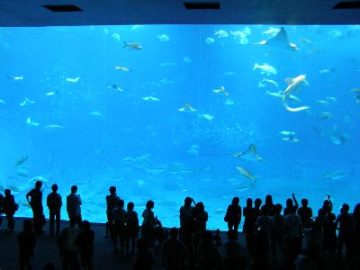 沖縄近海の魚のみを展示しているというこの水族館、なかなか見ごたえがある。しかし修学旅行生の多さ・うるささには辟易。「キモイ」なら見るな!