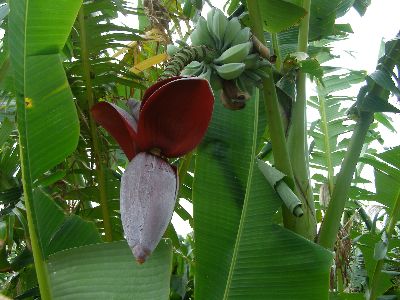 さらにバスに乗って同じく世界遺産で「100名城」にも選ばれている中城城に。しかし中城城は最寄りとされているバス停(Wikipedia情報)「安谷屋」からゆうに2kmはあった。写真は道端に普通になっているモンキーバナナ。
