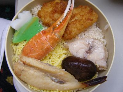 中身。うまいうまい。我慢の甲斐あり。冬季限定のため「駅弁ひとり旅」では食べれてなかった。