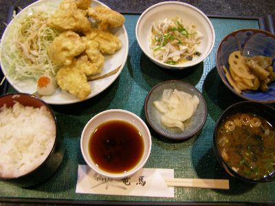 そして3年前に府内城に来た時も寄った食堂「竜馬」でとり天定食。こんなもんどこがよくて名物だろう?と思ってたけどここのはうまいなー。