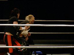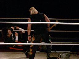 奴隷壱号はギターで思いっきりぶん殴る、ポイズンひっくり返る(右写真)。