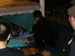 奴隷壱号が捕まえたポイズンの股間にバスドラペダルをセット、武井が踏んで股間攻撃(左写真)。