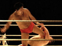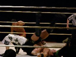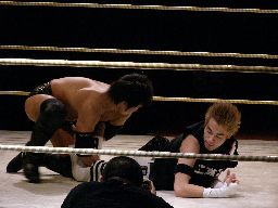 イハシムーンサルトプレス(右写真)、isamiカット。10分経過。