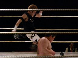 isamiがキックの連打(左写真)、