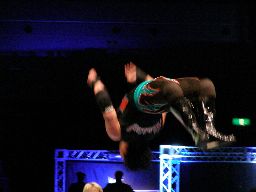 コーナーに上ってムーンサルト。