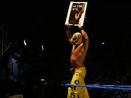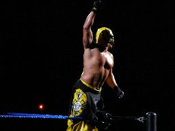 ミステリオはマイクを取って「エディゲレロ&レイ・ミステリオ、イチバン!」と叫ぶ。