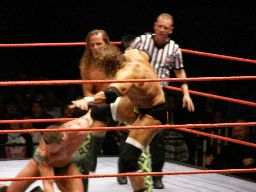 HHHガットショットからペディグリー狙うがエッジはリバースする。