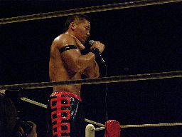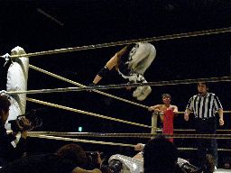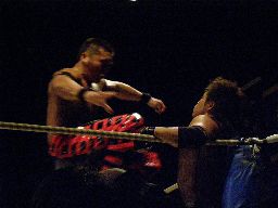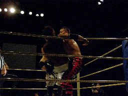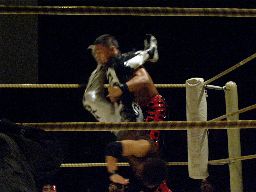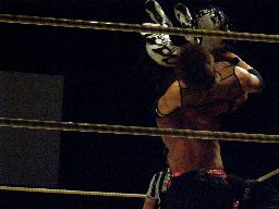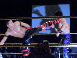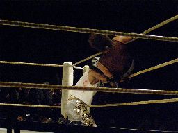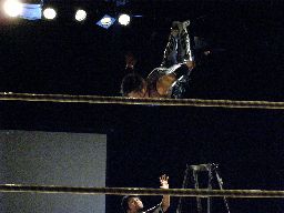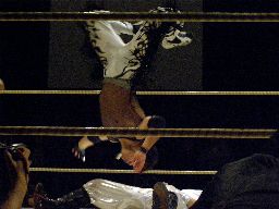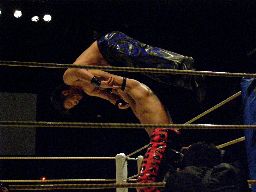 超神龍ファルコンアロー(右写真)、投げられたMIKAMIの鼻から大量の血が。ファルコンアローで鼻打つとも思えないからその前の空中戦のせいか?(よく見れなかった)