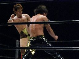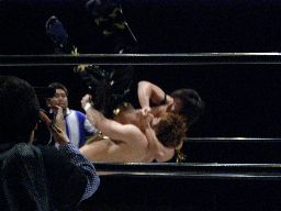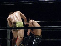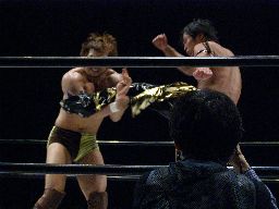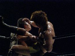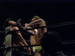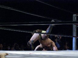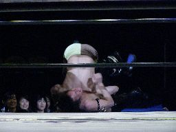 ブレーンバスター狙う、KUDOはDDTに切り返す(右写真)。