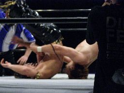 そしてバックドロップ(左写真)、カウント2。