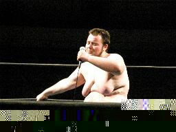 高木「バルーンありがとう。アメリカン・バルーンはもともと2ちゃんねるという秘密の掲示板のWJスレッドでその存在を知って、でも外人だからどうしようかなーと思ってたら、mixiというものがあって、そこでマイミク申請してました。日本語ペラペラなんです。2ちゃんねるで知り合って、mixiでやりとりして3ヶ月前に来日し、日本での知り合いはサイモン社長だけだったんですが、彼からも『よろしく頼む』と言う言葉をいただいてDDTで闘ってきました。」