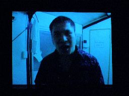 控室映像。不安そうな顔のアントンが映し出される(左写真)。