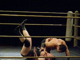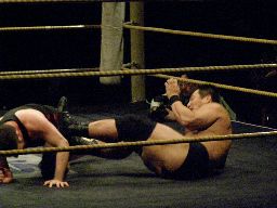 高木逆片エビ(右写真)、アントンがロープに手を伸ばすが高木はリング中央に引き戻す。アントンは這ってなんとかロープエスケープ。