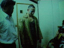 坂井が池田の胸倉をつかむ、池田は坂井の腕をひねる(左写真)。「そんなことより早くマッスルのチケットを売って、またぴあにがっぽり儲けさせてくれよな。」見事な棒読み。