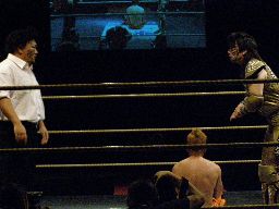 三四郎スタナー(右写真)、趙雲がカット。高木は趙雲にストーンコールドスタナー。